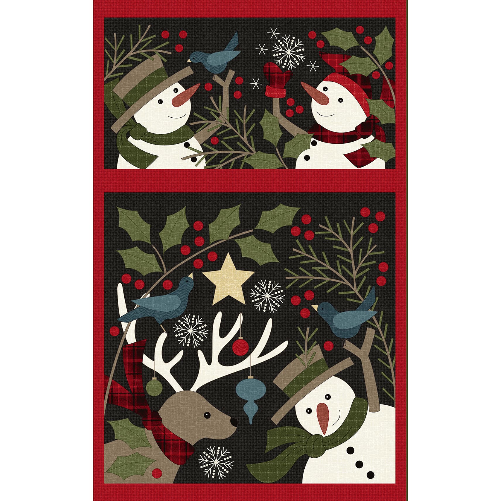Maywood Studio Holly Jolly Flannel MASF10980-J Snowman Panel - 27" Black Yardage
