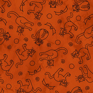 Robin Kingsley Spooky Stitches MAS10872-O Cats & Bats Orange Fabric