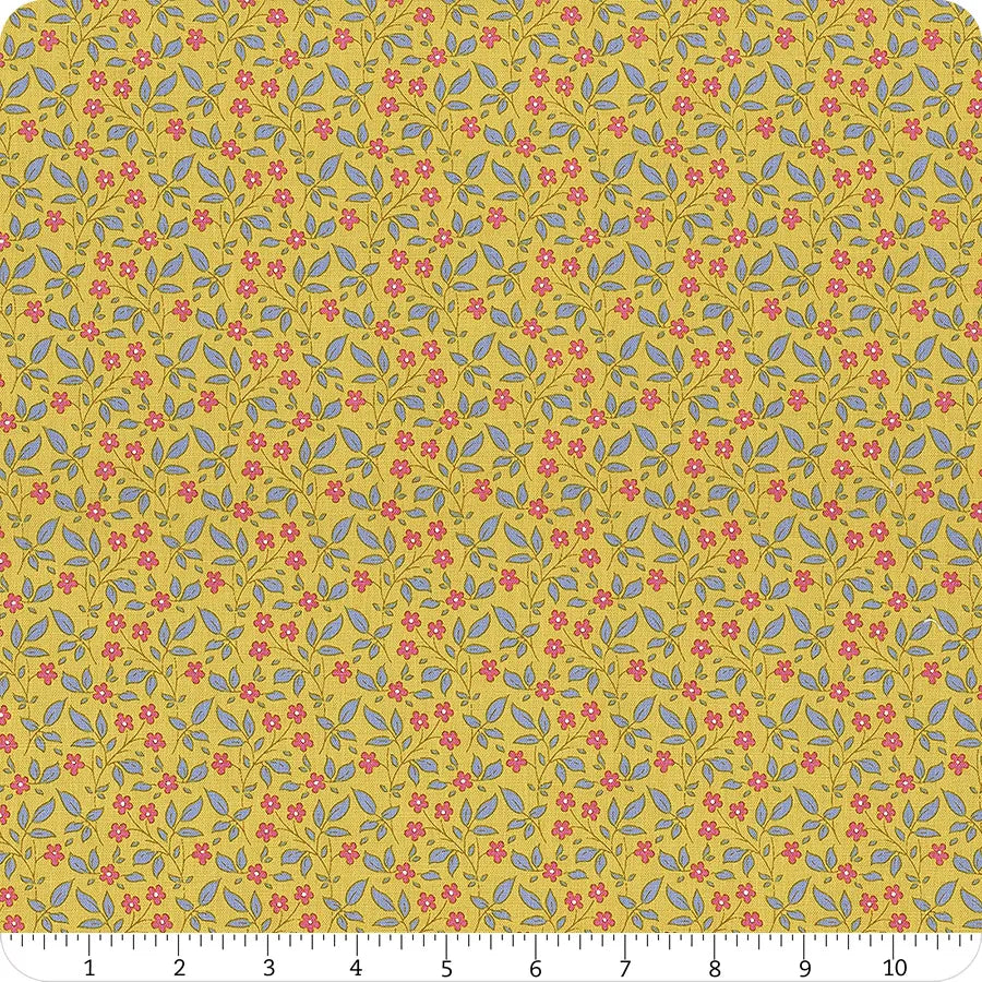 This collection is designed to evoke a relaxing, leisurely, "vintage summerhouse" aesthetic. Romantic florals, charming garden scenes, and a gentle color palette of teal, green, yellow, ginger, pink, and sand—with a dash of sour. 43/44" wide. 100% premium quilting cotton. Sold by the yard. Free shipping over $50.