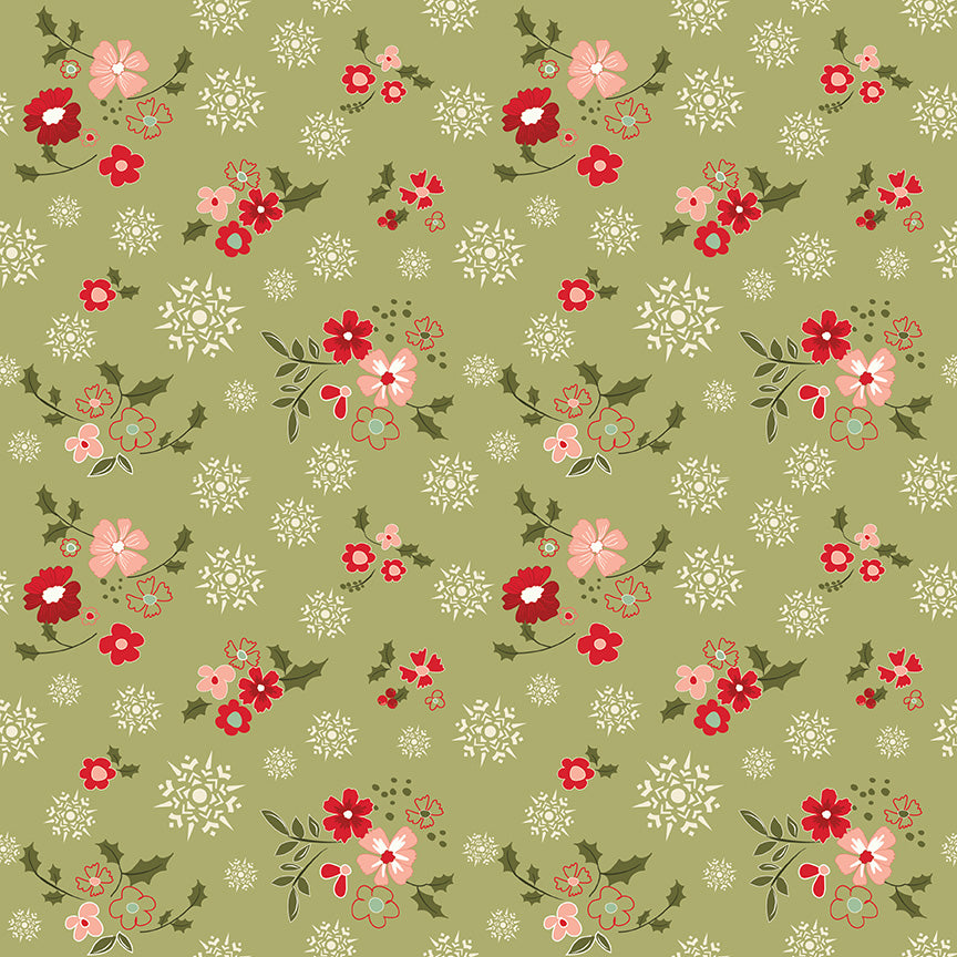 Glisten by Sandy Gervais C16222-OLIVE GLISTEN WINTER FLOWERS OLIVE Fabric Yardage